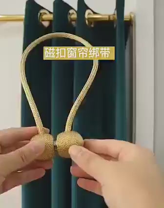 Design: These tiebacks typically feature decorative ends—often a woven ball or knot, as seen in the image—connected by a flexible rope or cord. Strong magnets are concealed within the decorative ends.